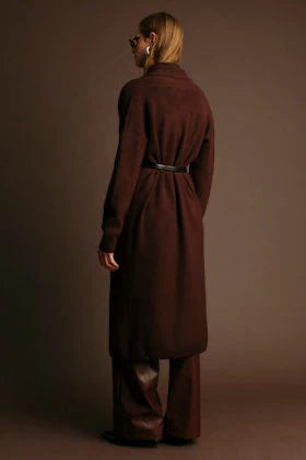 Wrap yourself in the softest cardigan (like a Coatigan) from Dèluc, offered in fall's perfect color, cacao. Features two front pockets and a sophisticated shawl collar! Belt it for a flattering waistline!