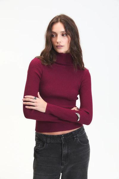 Sadie and Sage - Butter Pecan Chunky Sweater/Burgundy Multi