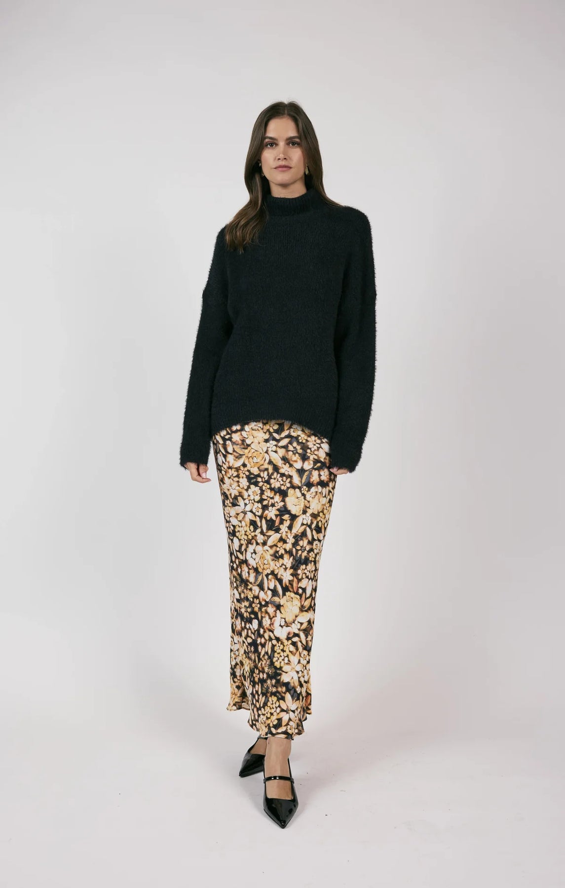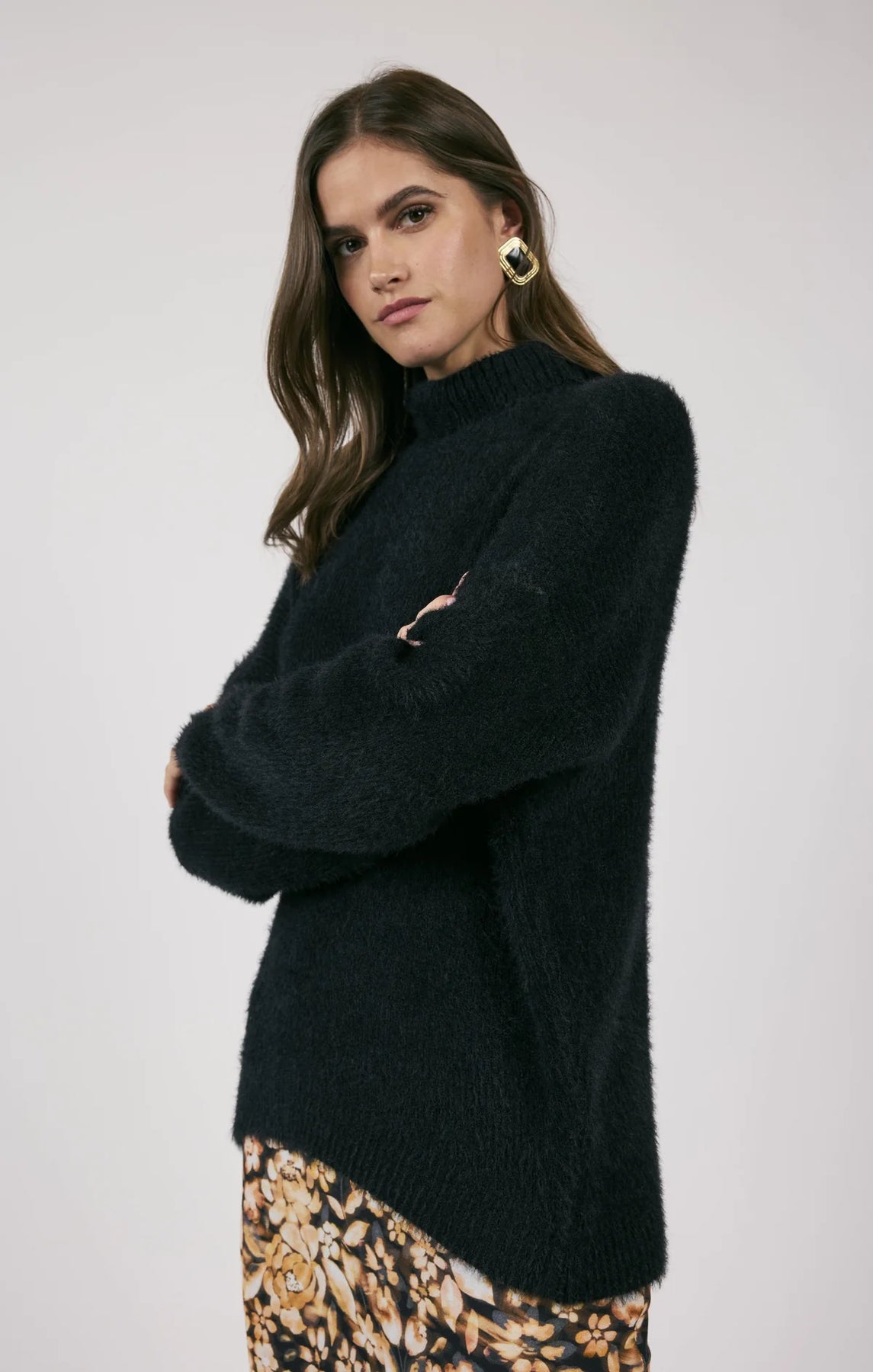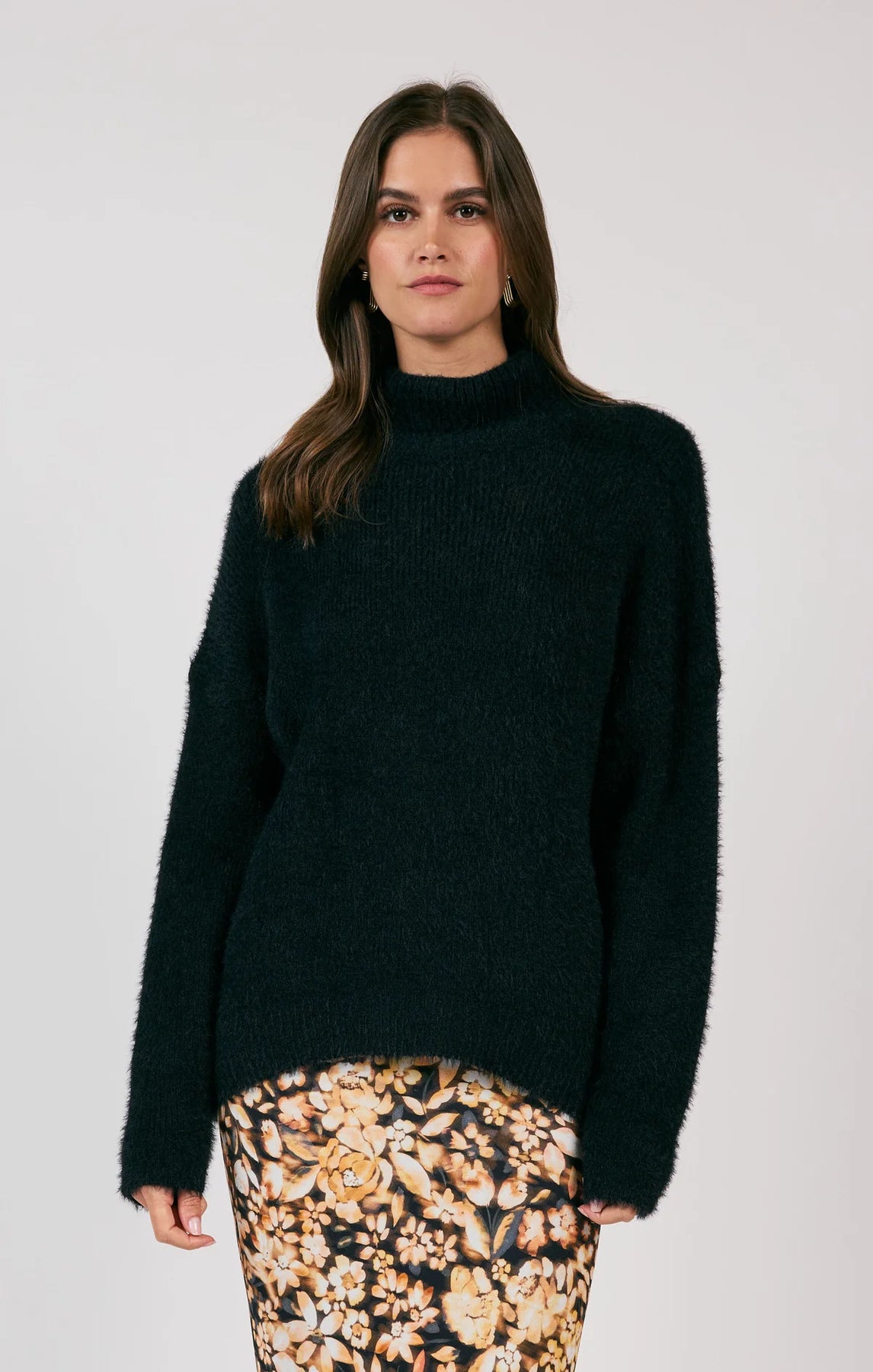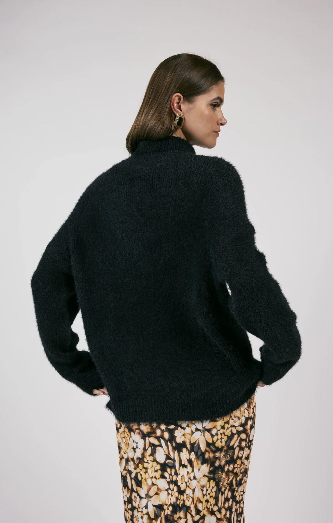 This knit pullover boasts a luxurious composition of 66% Nylon and 34% Acrylic, offering both style and comfort with its long sleeves and turtleneck design!