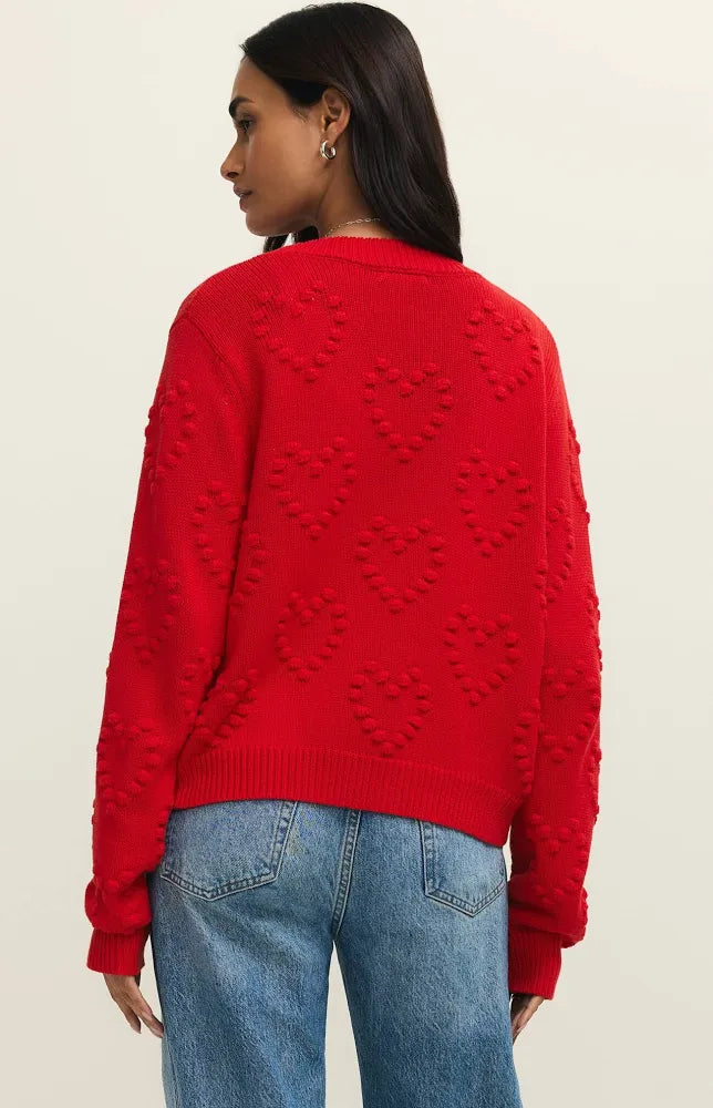 A cozy cotton knit and heart-stitch pattern make this layer soft with a romantic touch!