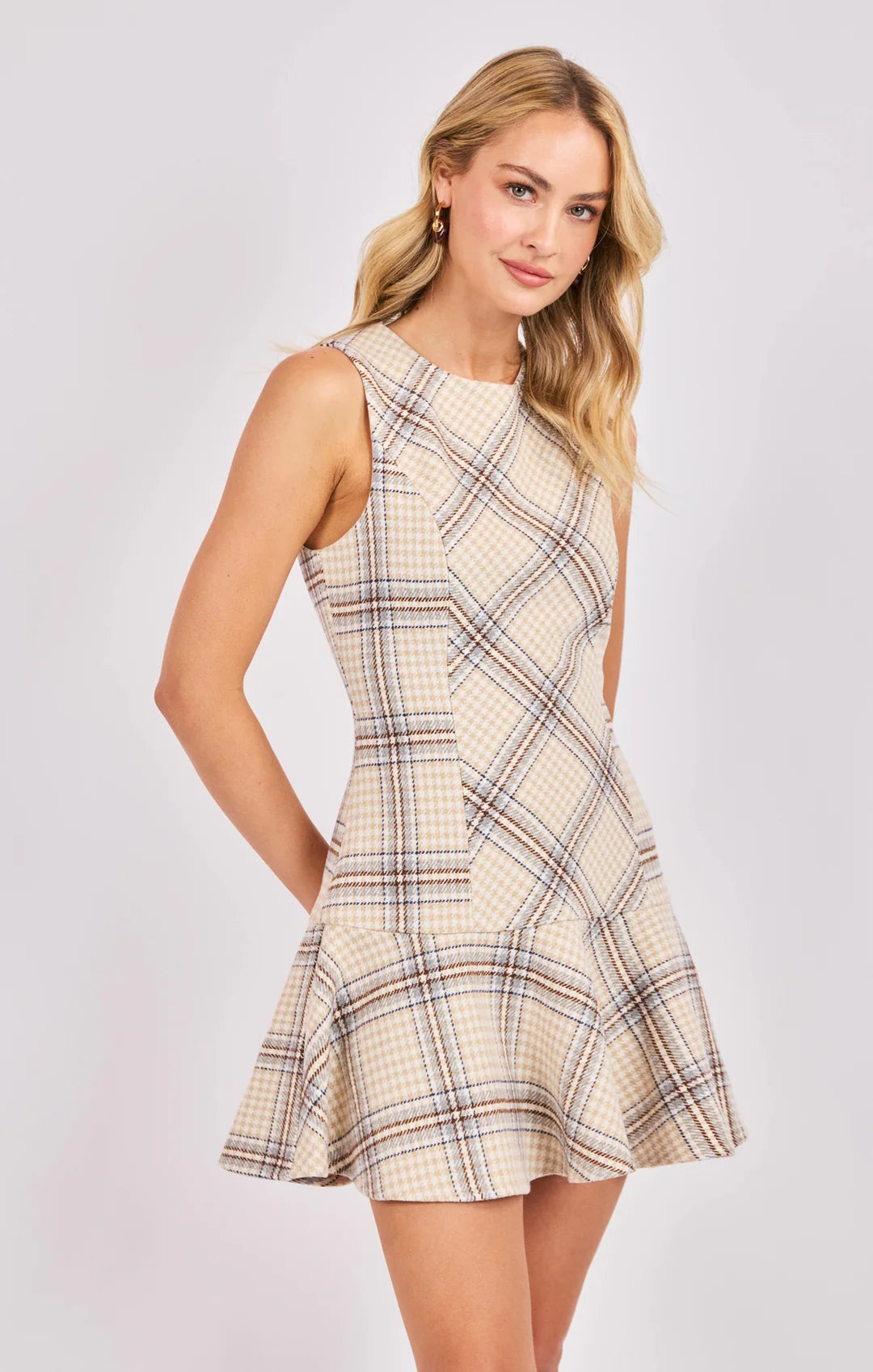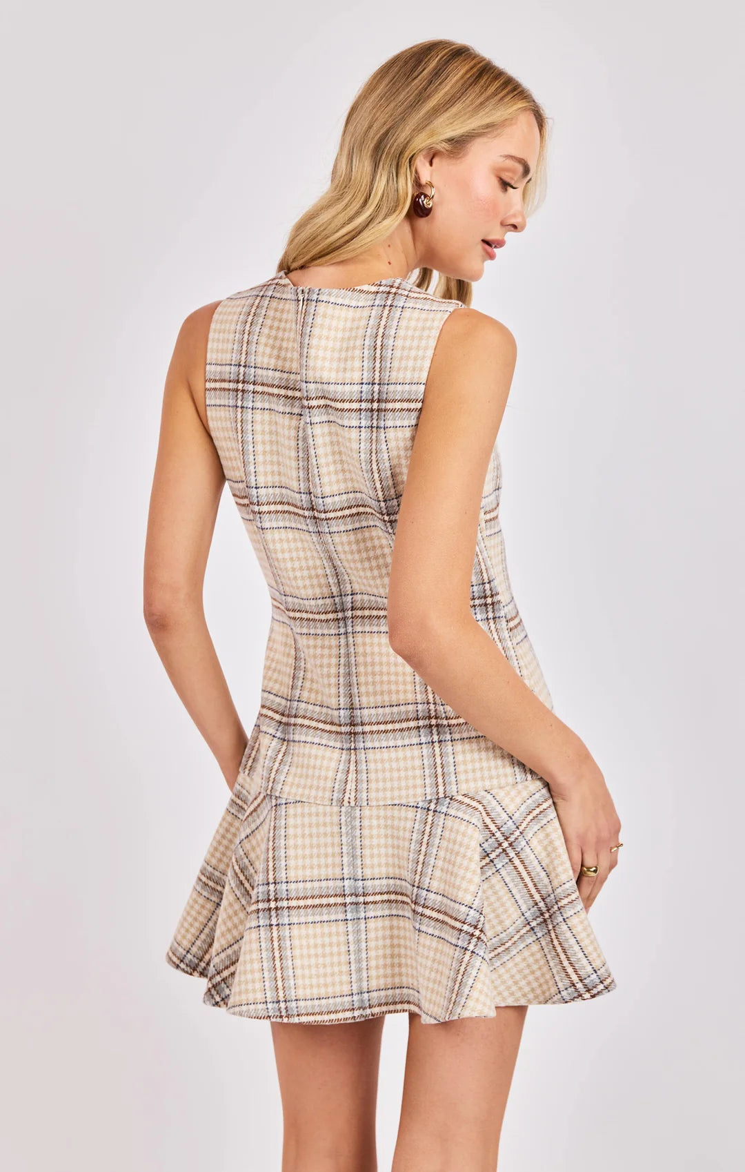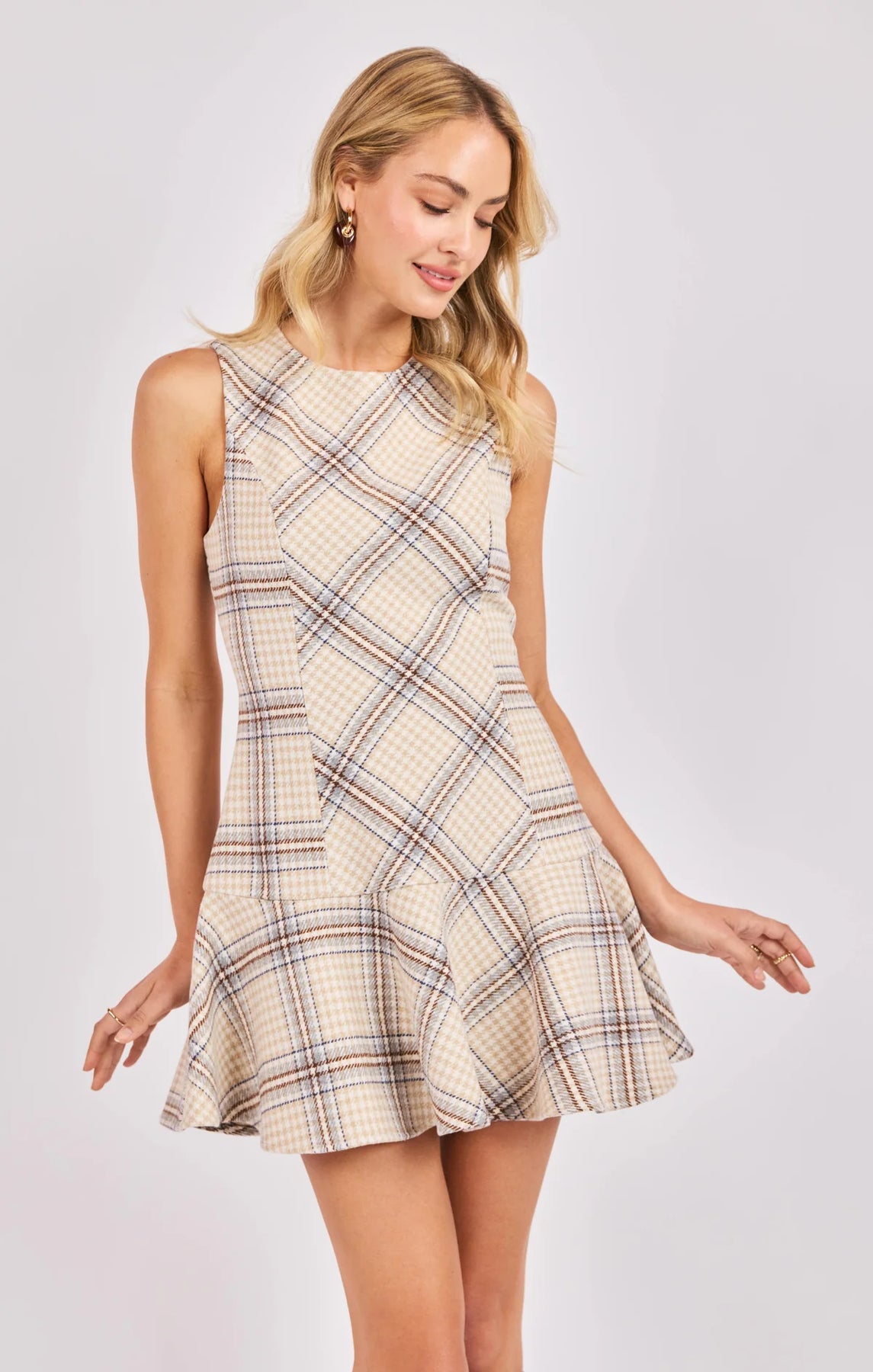 The sweetest mini and just in time for the season! We’re loving the ruffle hem in this gorgeous sleeveless, plaid mini dress! Sweet on its own or wear a cute tighter top underneath with some tights for colder days!